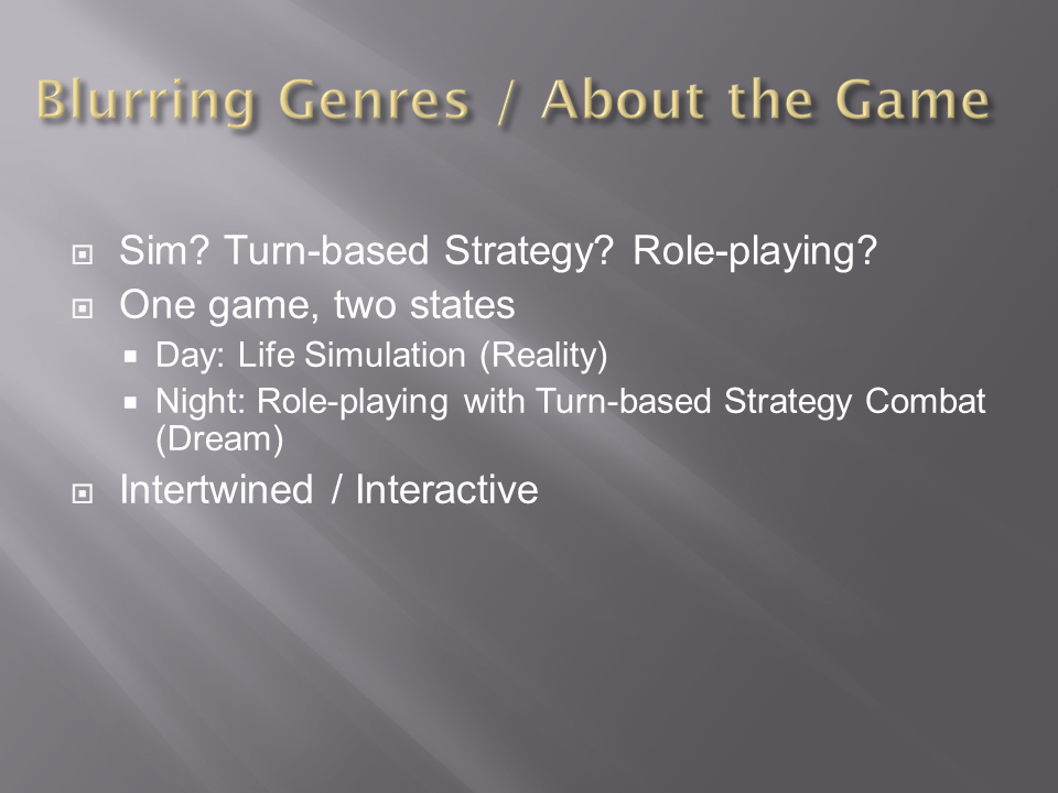 Published December 4, 2012 at 960 × 720 in Game Pitch: Ludic Sketch-The Dualistic Life of Day & Night Slide2 ← Previous Next →